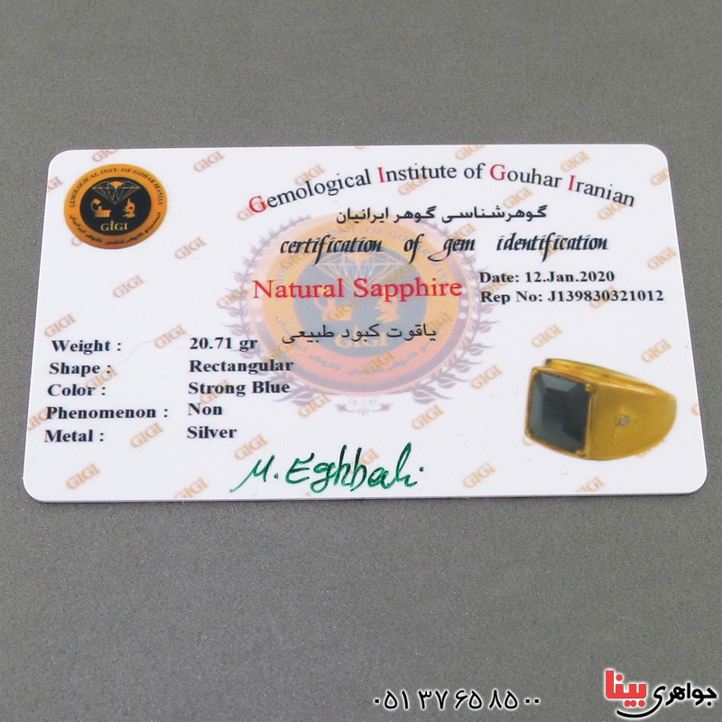 انگشتر یاقوت کبود و الماس فاخر مردانه با شناسنامه بین المللی _کد:2847