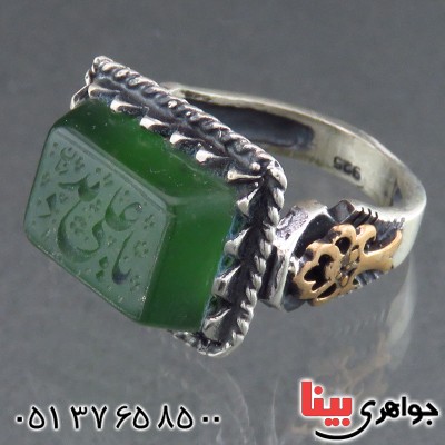 انگشتر یشم خاص مردانه حکاکی گود یا علی مدد _کد:1956