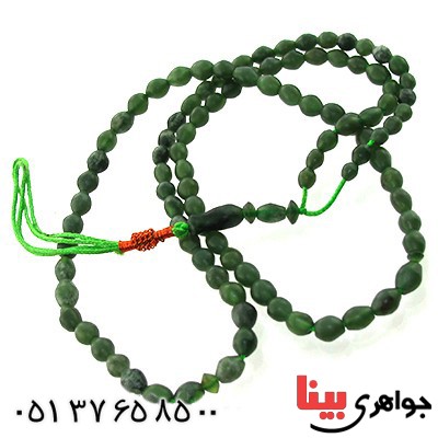 تسبیح شاه مقصود افغانی مرغوب - تسبیح 101 دانه ای - تسبیح دست ساز - دانه های تسبیح سبز تیره خوشرنگ با تراش دانه هلی - تسبیح با شیخک سنگی و شرابه سنتی - طول این تسبیح از شیخک تا انتهای دانه ها حدود 38 سانتی متر می باشد - سری: 961025