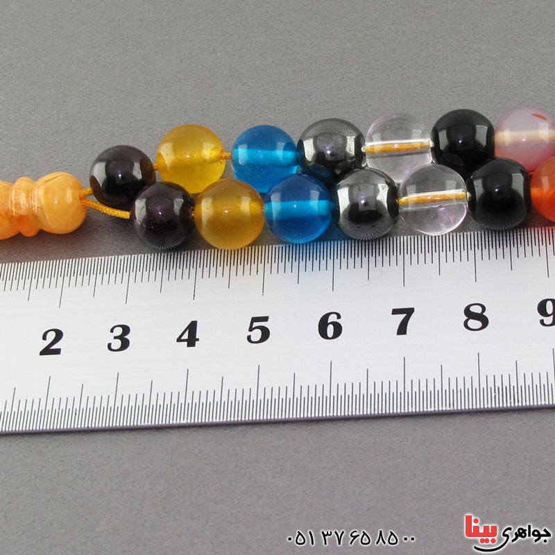 تسبیح چند جواهر شفابخش و سنگ درمانی - دانه های تسبیح شامل سنگ های عقیق سیاه ،عقیق شرف الشمس ، گارنت ، حدید، در، ،کهربا، دلربا ، جید ، عقیق شجری ، فیروزه هندی ، عقیق سلیمانی ، کوارتز صورتی، مالاکیت، لاجورد ، سندلوس ،جاسپر می باشد - تسبیحی خوش دست با مهره های درشت و خلیفه های زیبا - تسبیح زیبا و تک - ساخت جواهری بینا -شیخک های هر تسبیح متفاوت از بقیه و جنس یکی از دانه های تسبیح می باشد - تسبیح مخصوص انرژی درمانی و مناسب سنگ درمانی - تسبیح با سنگ های معدنی و اصلی با کیفیت عالی و مرغوب - چیدمان سنگ ها در کنار هم به گونه ای می باشد که اثرات هم را تقویت و شارژ می کنند و باعث تخلیه امواج منفی از بدن شده و آرامش بخش می باشد - تسبیح سنگ درمانی به علت اینکه سنگ ها مستقیم با پوست بدن در تماس می باشد سریع تر تاثیرات خود را به بدن انتقال می دهند - به دلیل نوع سنگ های کار شده در این تسبیح، برای دفع استرس، اضطراب، ترس و افزایش آرامش تاثیر فوق العاده ای دارد - سنگ های بسیار خوشرنگ و با کیفیت - ترکیب رنگی سنگ ها در کنار هم زیبایی خاصی به تسبیح بخشیده است - تسبیح شامل سنگ های چاکرا و ماه تولد - طول این تسبیح از ابتدای شرابه تا انتهای دانه ها حدود 26 سانتی متر می باشد - تسبیح با شرابه فلزی که سه دانه مرمر متبرک شده به کربلا به آن آویز شده است - "دقت داشته باشید که تسبیح ها تعداد بالا موجود است و احتمال وجود تفاوتهایی در رنگ ، ظاهر و .. محصولات ارسالی وجود دارد " - سری: 980904