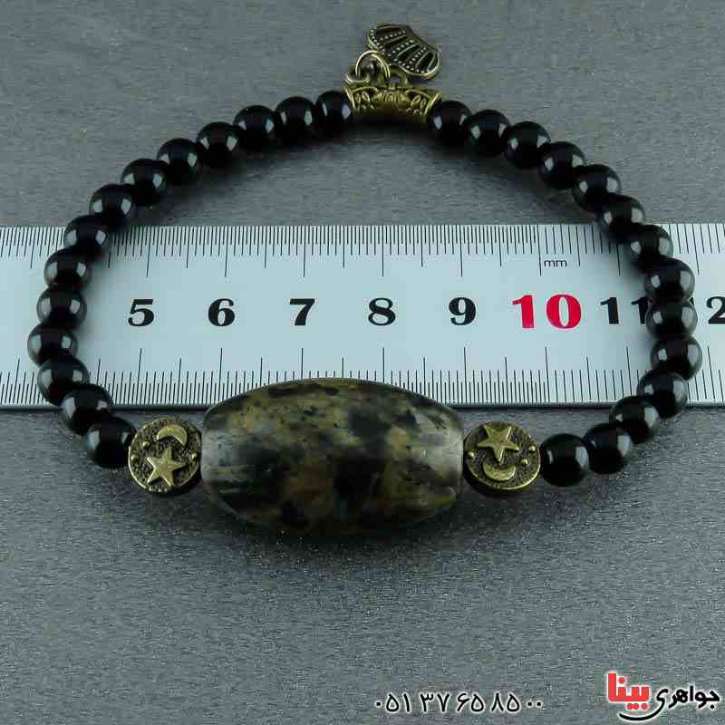 نگین دستبند هبهاب زیبا و شیک با رشته عقیق سیاه - مناسب آقایان و خانم های خوش سلیقه - خواص هبهاب ( افزایش قوای جنسی و تقویت رابطه بین زوجین - افزایش رزق و روزی و همچنین بهبود اوضاع مالی- افزایش محبوبیت بین عام و زوجین- هبهاب باعث افزایش ابهت و بزرگی صاحب خود شده و باعث رعب و وحشت در دل دشمنان میگردد- جذب کننده بسیارقوی و سریع جنس مخالف- افزایش و جذب مشتری مغازه و دکان و... ) - نکته : ( خواص هبهاب ، خرمهره ، مهره مار و نگین هایی از این قبیل براساس تجربیات پیشینیان و قدما می باشد که سینه به سینه نقل شده و به اثبات و تجربه رسیده است ، اما مدارک علمی بر این مبنا وجود ندارد ) - نگین دستبند هبهاب معدنی اصلی است - دستبند هبهاب درشت و سنگین و با وزن حدود 25/6 گرم - سری : 991213/11