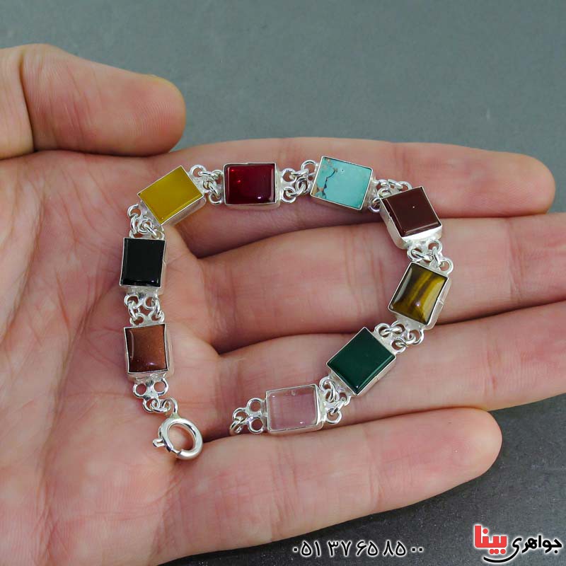 دستبند چند جواهر سنگ درمانی مدل سلجوقی _کد:۲۰۴۷۵