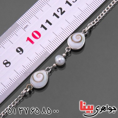 دستبند چند جواهر صدف (مهره مار) و مروارید زنانه _کد:13746