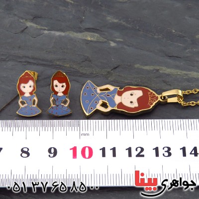 استیل - سرویس استیل دخترانه با طرح پرنسس خوشرنگ - سرویس شامل : گردنبند و گوشواره می باشد - سری: 960715/92 S:1