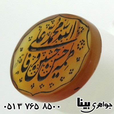 نگین عقیق زرد شرف الشمس با حکاکی پنج تن مبارک خریدارش باشه