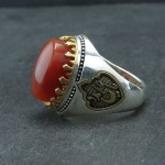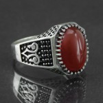 نگین انگشتر عقیق قرمز درشت با حکاکی علی ، فاطمه _کد:17656
