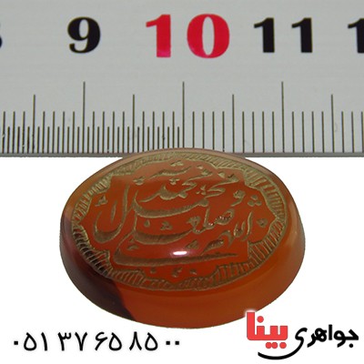 نگین عقیق یمنی خوشرنگ و زیبا - درشت و سنگین - حکاکی گود " صلوات " - مناسب انگشتر، گردنبند یا حلقه آویز سنگ درمانی که سفارش ساخت آن توسط جواهری بینا پذیرفته می شود - نگین عقیق یمنی با تراش دامله - نگین عقیق یمنی معدنی و اصلی - وزن: حدود 31 قیراط - سری: 960422