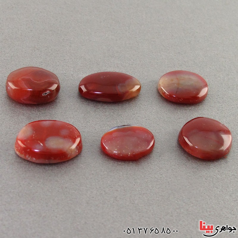 نگین عقیق یمنی مصور بسیار زیبا و خوشرنگ - قابل سفارش برای انواع زیور آلات : انگشتر و گردنبند و ... که سفارش ساخت آن توسط جواهری بینا پذیرفته می شود - نگین ها به صورت مجموعه 6 عددی ارائه می شود - (خواص عقیق : افزایش رزق و روزی، دفع بلا، افزایش طول عمر، رفع غم و ...) - نگین های عقیق معدنی و اصلی می باشند - وزن حدود: 36 قیراط - سری: 990126/63