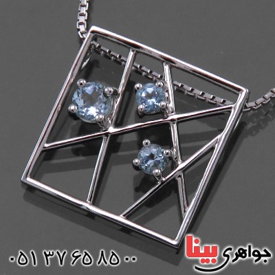 گردنبند آکوآمارین زنانه مانی مدل سه نگین _کد:۱۴۰۷۸