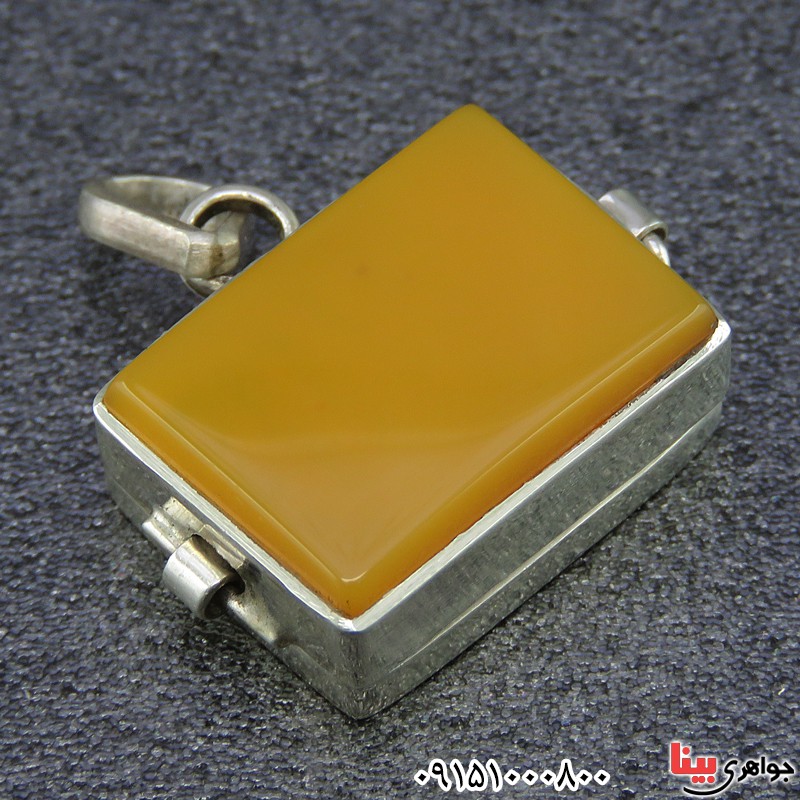 نقره 925 عیار - نگین عقیق شرف الشمس زیبا و شیک خاص - پشت گردنبند، صفحات نقره به صورت صندوقچه ای قرار گرفته ، و روی آن این احراز که برگرفته از کتب فقهی با حروف و اعداد ابجد هست نوشته شده و" به نام " حکاکی میشود - صندوقچه ای بودن نقره در پشت گردنبند مناسب شما عزیزانی است که میخواهید از فضایل ادعیه بهره ببرید اما این احراز در زیور آلات مشخص و ظاهر نباشد - احرازی مانند : محبت ، باطل سحر ، گشایش کار ، افزایش رزق و روزی ، دفع بلا ، چشم زخم و ..... - (خواص عقیق: افزایش رزق و روزی، دفع بلا، افزایش طول عمر، رفع غم و ...) - " توجه داشته باشید این کار با سایر عقیق ها و فیروزه نیز قابل اجرا می باشد " - " امکان حکاکی سوره یس نیز در این گردنبند وجود دارد" - نگین این گردنبند عقیق شرف الشمس، معدنی اصلی میباشد - نگین گردنبند با تراش مستطیلی - وزن: حدود 8/9 گرم - سری: 14001028/5**BA S:1