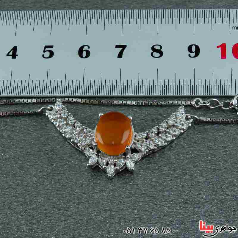 گردنبند عقیق یمنی شرف الشمس خوشرنگ رودیوم زنانه _کد:23421