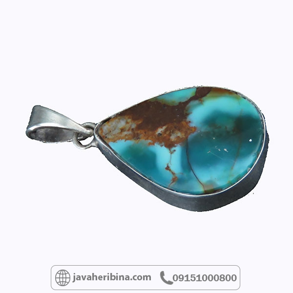 گردنبند فیروزه نقره با تراش اشکی _کد:34195