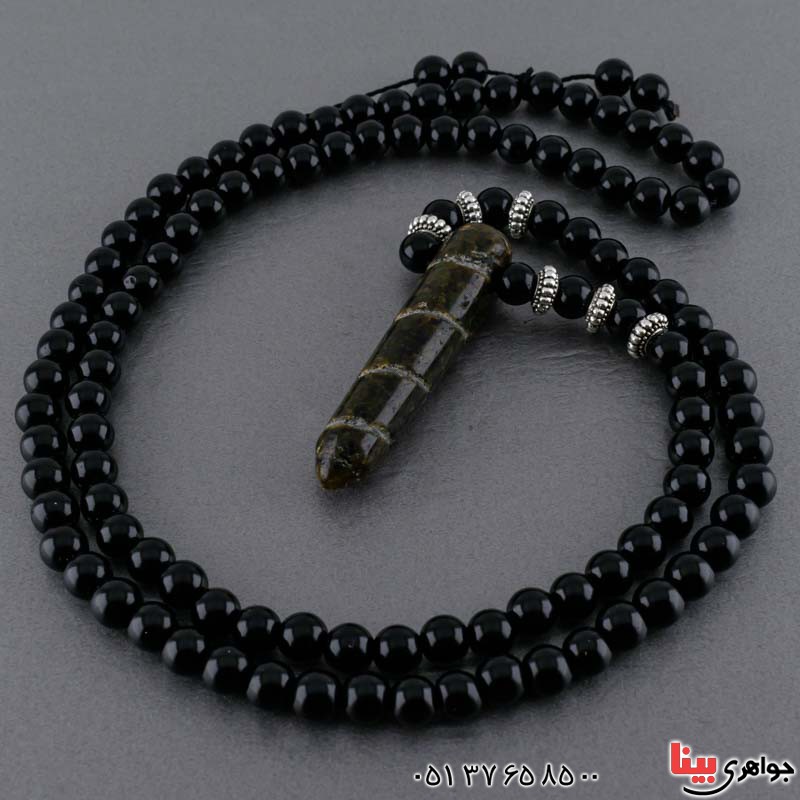 نگین گردنبند هبهاب با رشته عقیق سیاه