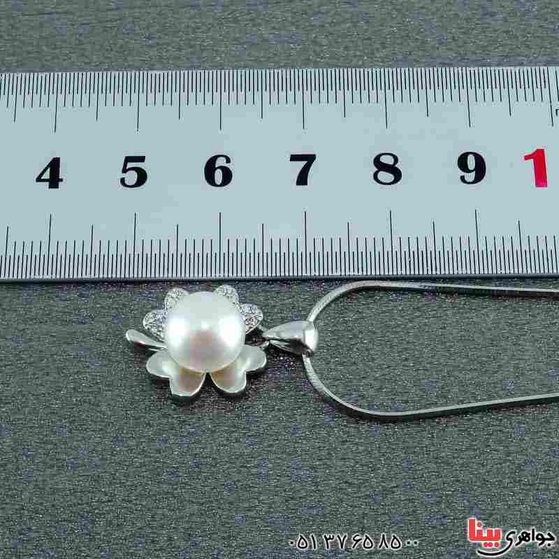 نقره 925 عیار - گردنبند مروارید پرورشی ، درجه یک غلتان و کم موج همراه با زنجیر ایتالیایی - گردنبند مروارید زنانه درشت و مجلسی - نگین های سوئیسی بسیار زیبایی که دور مروارید روی گلبرگ های فریم ست شده است باعث درخشش و جلوه گردنبند شده است - گردنبندی چشمگیر و درخشان مناسب بانوان زیبا پسند - نگین گردنبند با تراش کروی - وزن: حدود 5/4 گرم - طرح فریم تزئین شده با نگین های درخشان سوئیسی می باشد - سری: 991209/16**AM S:1