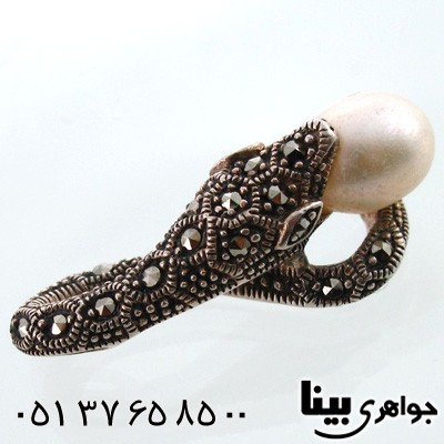 نقره 925 عیار - تک - نگین مروارید بسیار مرغوب، شفاف، غلتان و کم موج - طراحی فریم گردنبند بسیار زیبا و به شکل مار - سرتاسر فریم گردنبند با نگین های ریز حدید پوشیده شده است که درخشش فوق العاده ای را به همراه دارد - گردنبندی فوق العاده زیبا و خاص با طراحی منحصر به فرد - مخصوص بانوان خوش سلیقه - گردنبند مروارید زنانه - سری: 930605