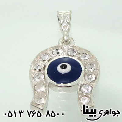 نقره 925 عیار - گردنبند چشم زخم - طرح نعلی - قالبی - سبک ساده و همه پسند - نگین چشم زخم آبی - مناسب براي تمامي سنين و سلايق. t