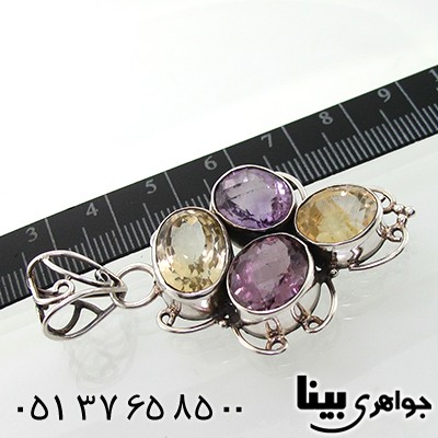 نقره 925 عیار - نگین های آمتیست و سیترین بسیار خوشرنگ و شفاف - نگین های خوش تراش برلیانی - گردنبند دست ساز - سبک سنتی - گردنبندی درشت و سنگین - مدل گردنبند بسیار زیبا، جدید و شیک - 4 عدد نگین آمتیست و سیترین بر روی گردنبند به زیبایی نمایان است - طراحی گردنبند خاص و منحصر به فرد - با این گردنبند در مهمانی ها متفاوت باشید - (سفارش جواهری بینا سری 800) - گردنبند چند جواهر زنانه - وزن: حدود 15 گرم - سری: 940116. t