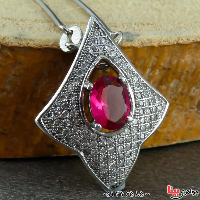 گردنبند یاقوت سرخ رودیوم زنانه همراه با زنجیر _کد:۲۳۳۷۲