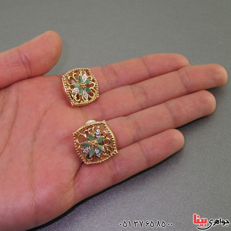 گوشواره زمرد و الماس بسیار عالی مانی زنانه مدل پارسه _کد:۲۴۲۳