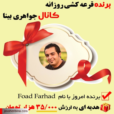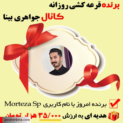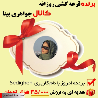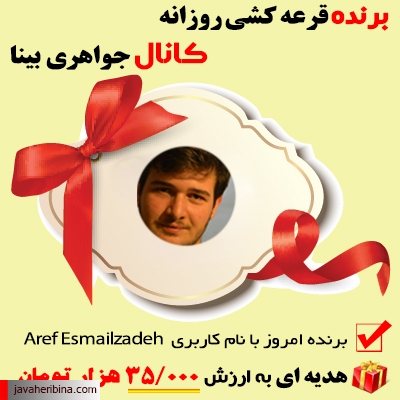 ⌛️ از شنبه مورخ ۹۴/۱۲/۰۸ تا آخر سال از بین اعضای کانال جواهری بینا هر روز قرعه کشی می شود .