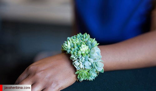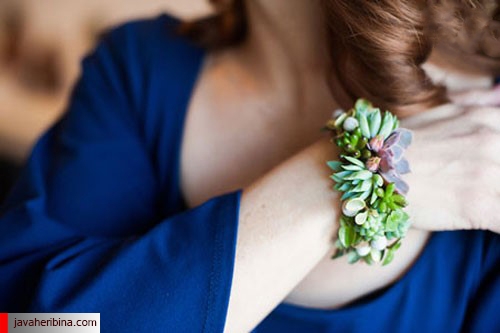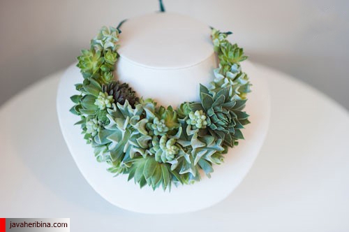 او با استفاده از گیاهان شاداب و کاکتوس هایی که از گلخانه خانوادگیشان دستچین کرده، دستبند و زیورآلات بسیار زیبایی ساخته است.
