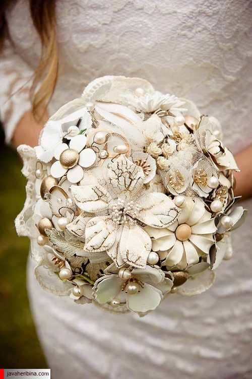 مدل های جدید دسته گل عروس با نگین های تزئینی