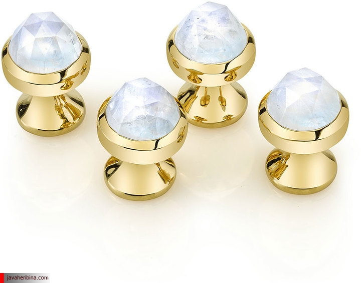 دکمه سردست با نگین مون استون (سنگ ماه)