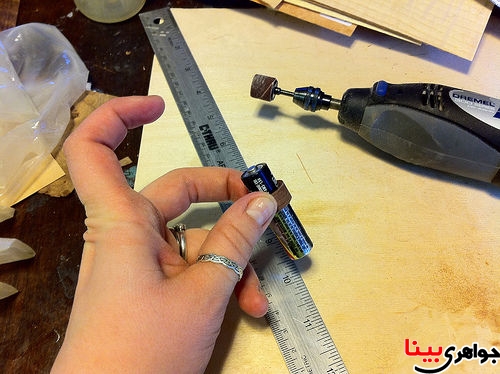 نحوه کار در این مرحله بستگی به شکلی دارد که برای انگشتر چوبی در نظر گرفته اید . اگر میخواهید روی انگشتر با سنگ دایرههای رنگی ایجاد کنید، باید با درمل روی انگشتر را سوراخ کنید . البته منظورمان از سوراخ یک حفره سطحی و کم عمق است . برای ایجاد این حفره میتوانید از متههای خیلی دریل یا درمل استفاده کنید .