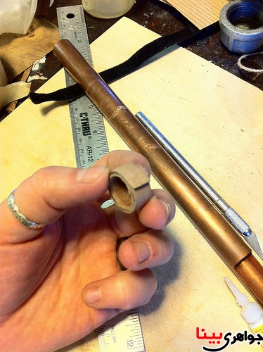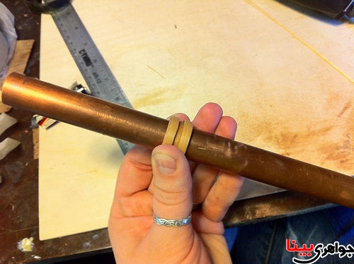 حالا باید لوله ای پیدا کنید که قطر خارجی آن به اندازه انگشت تان باشد . بجای میله میتوانید از هر چیز استوانه ای دیگر که سطح صاف داشته باشد هم استفاده کنید .