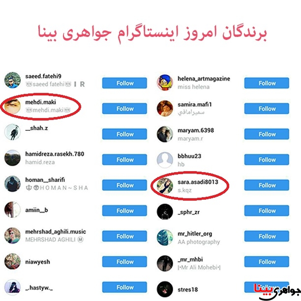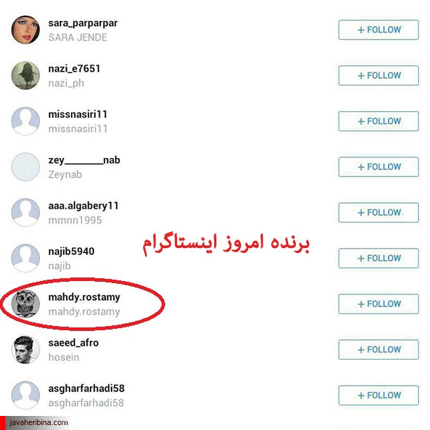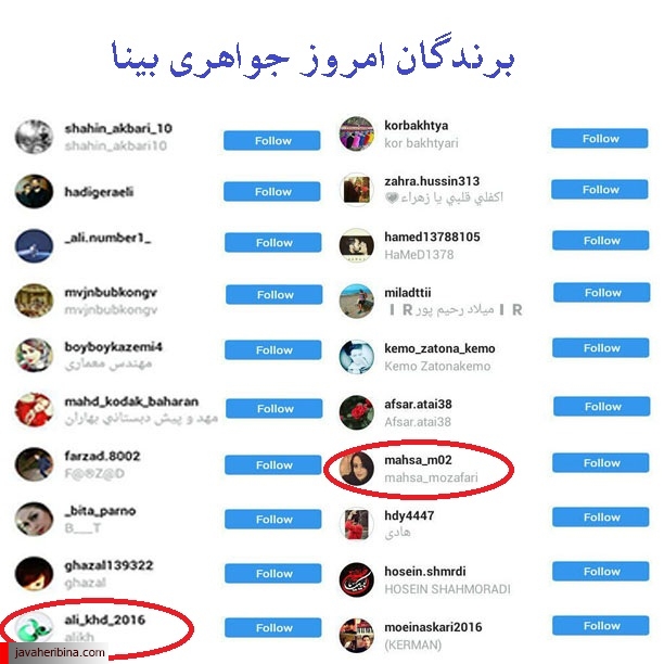 برنده امروز جواهری بینا در پیج اینستاگرام