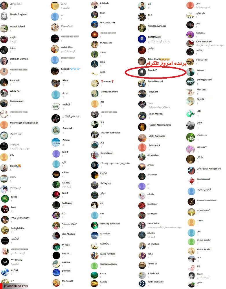 برندگان کانال تلگرام جواهری بینا در تاریخ ۹۵/۰۸/۰۴ :