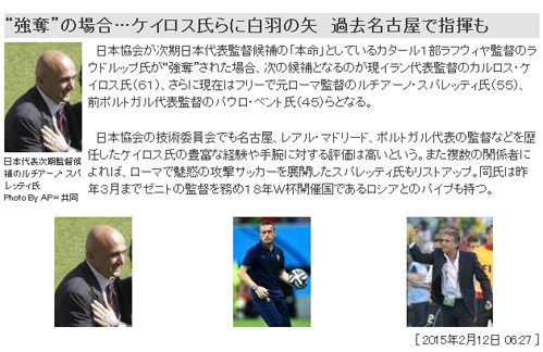 یکی از رسانه های ژاپن با انتشار عکسی از کارلوس کی روش، اسپالتی و پائولو بنتو، از این سه مربی به عنوان گزینه های اصلی فدراسیون فوتبال ژاپن نام برده است.