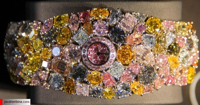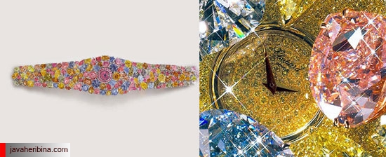 به دلیل وجود ۲۰۱ قیراط الماس رنگی، این ساعت بیشتر شبیه به یک دست بند است تا یک ساعت.
