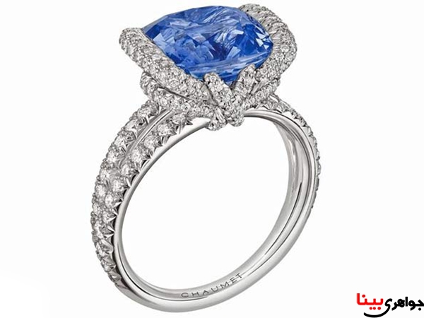 خانه جواهر معتبر شومه « Chaumet» در مجموعه جدید خود حلقه طلای سفید با روکش رودیوم را با یاقوت سیلان ۵/۷۸ قیراطی و الماس برلیانی برش خورده مزین کرده است.