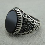 نقره 925 عیار - نگین انگشتر عقیق سیاه خوشرنگ - رکاب انگشتر محکم و بادوام با قیمتی مناسب - مناسب آقایان خوش سلیقه - انگشتر مدل جدید - نگین این انگشتر عقیق سیاه (اونیکس)، معدنی اصلی میباشد - نگین انگشتر با تراش دامله - وزن: حدود 10 گرم - طرح روی رکاب سیاه قلم کاری یا رضا (ع) می باشد - سری: 970126/93 S:3